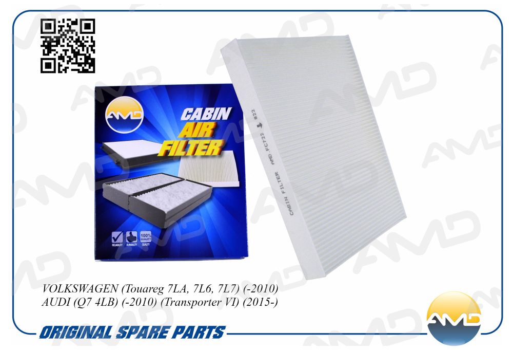 AMD.FC722 AMD Фильтр салонный VOLKSWAGEN Touareg 7LA, 7L6, 7L7, -2010, AUDI Q7 4LB, -2010, Tra