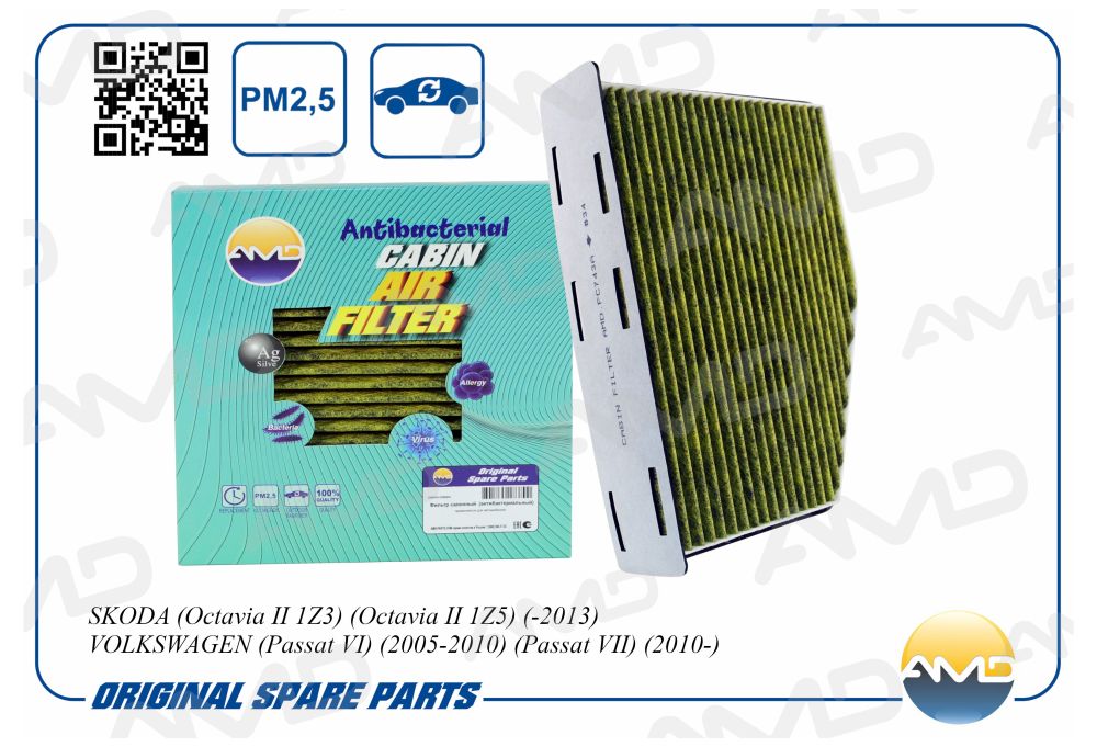 AMD.FC743A AMD Фильтр салонный (антибактериальный, угольный) SKODA Octavia II 1Z3, Octavia II 1