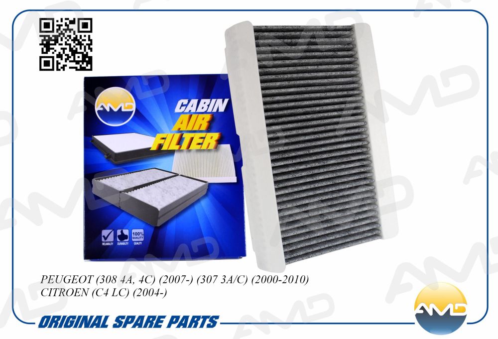 AMD.FC748C AMD Фильтр салонный (угольный) PEUGEOT 308 4A, 4С, 2007-, 307 3A/C, 2000-2010, CITRO