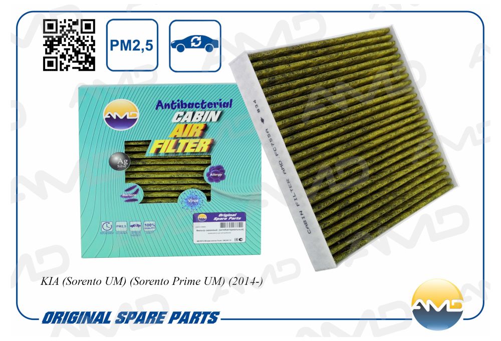 AMD.FC755A AMD Фильтр салонный (антибактериальный, угольный) KIA Sorento UM, Sorento Prime UM,