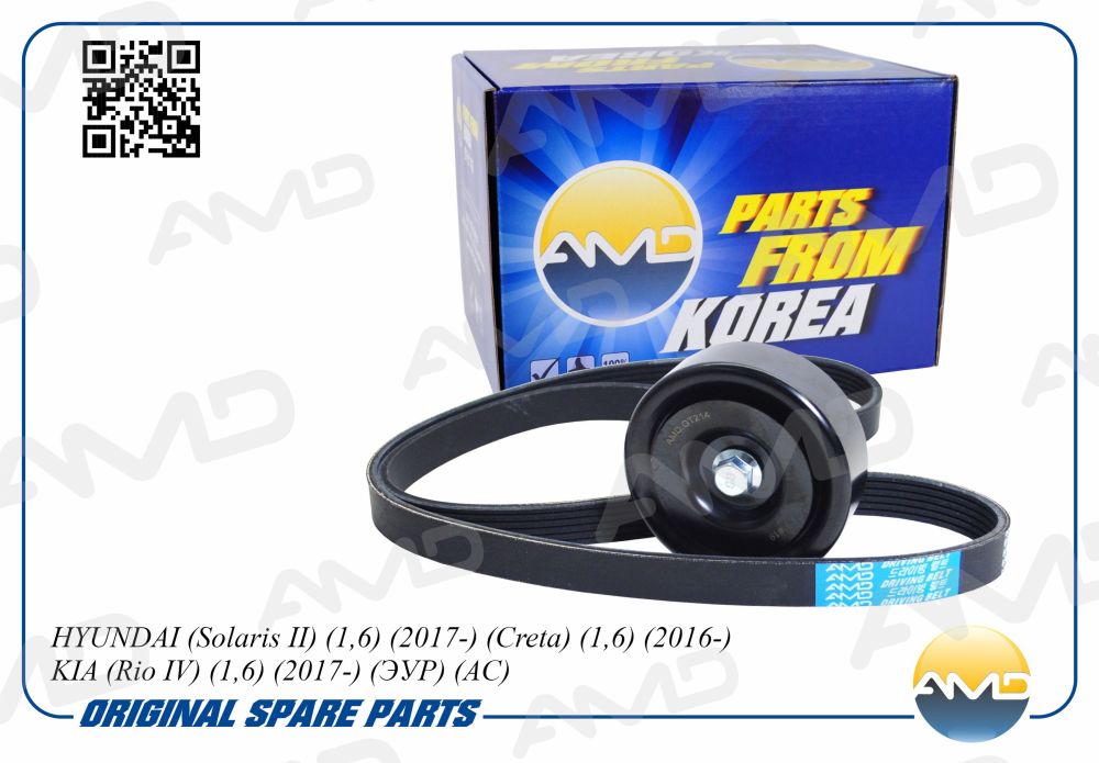 AMD.KITBR144 AMD Комплект ремня приводного (ремень+ролик) HYUNDAI Solaris II, 1,6, 2017-, Creta,