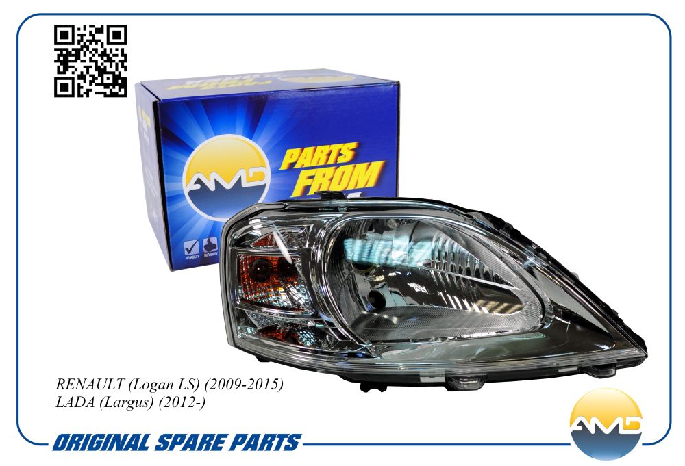 | Наименование | Фара передняя правая RENAULT Logan LS, 2009-2015, LADA Largus, 2012- AMDLP288 |