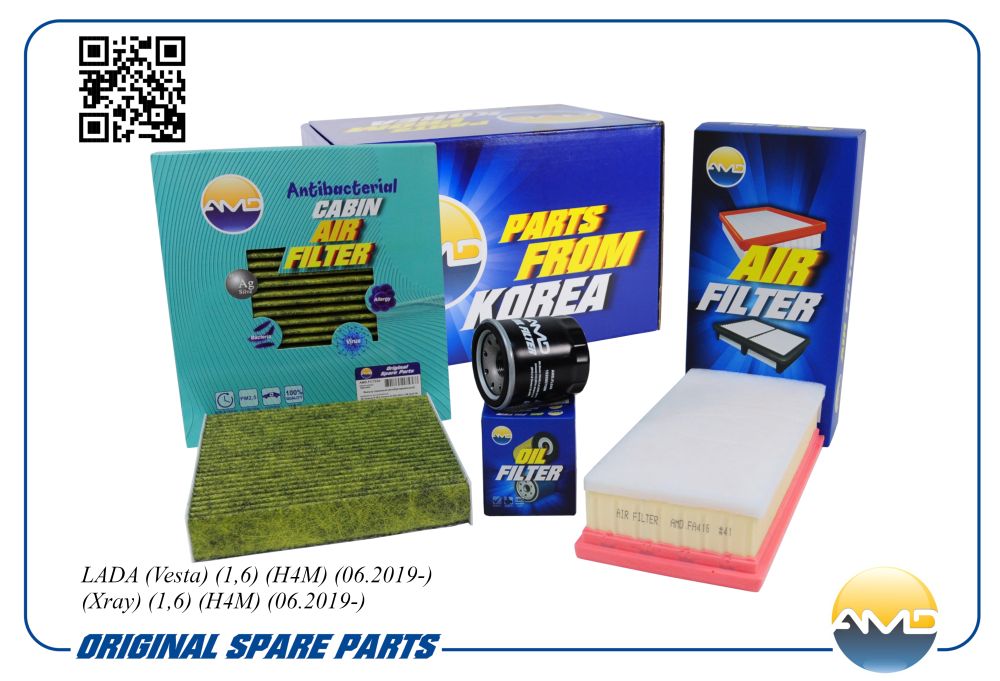 AMD.SETF165A AMD Комплект фильтров (масл.+возд.+салон.антибак.уг.) LADA Vesta, 1,6, H4M, 06.2019-