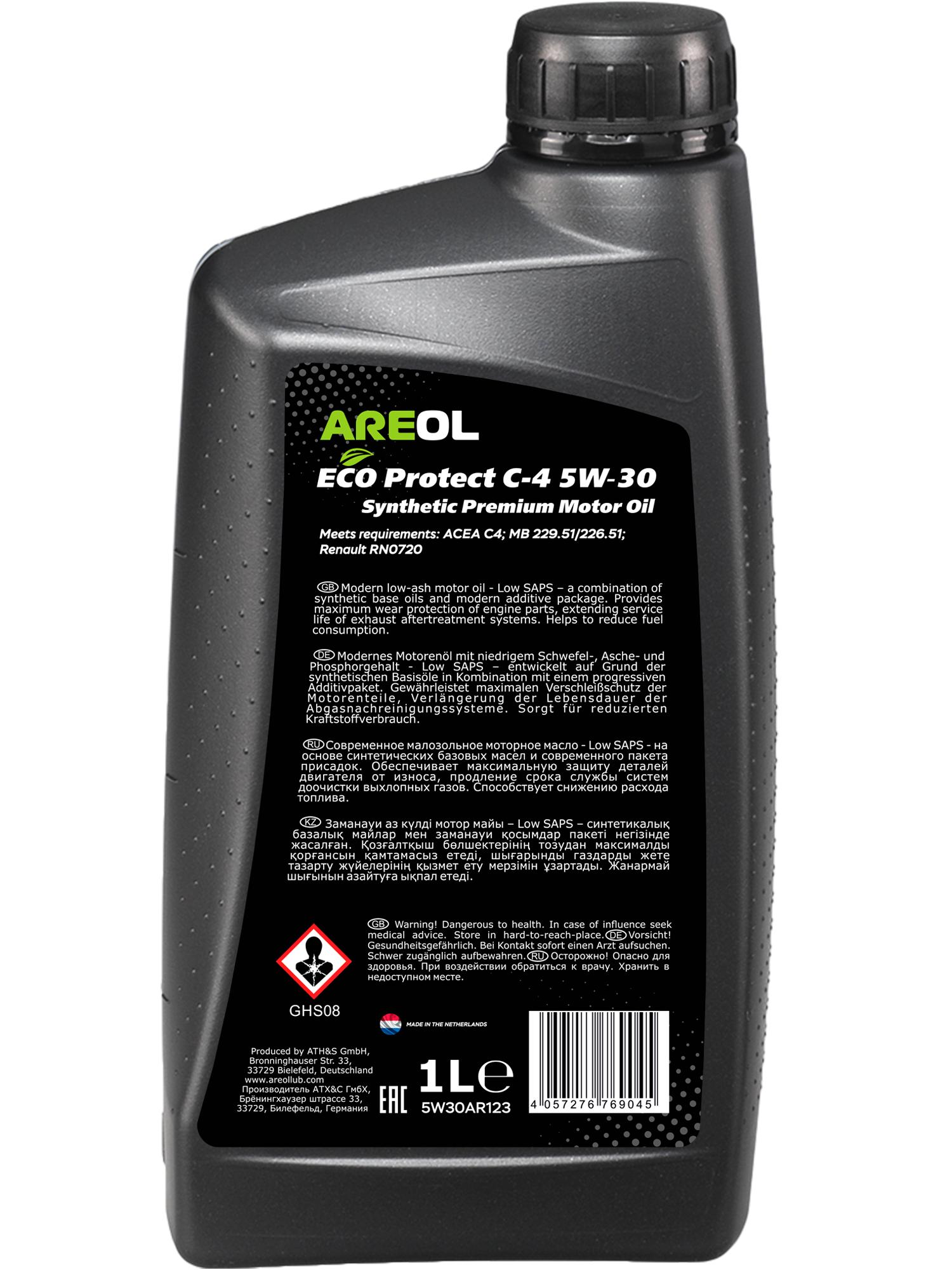 5W30AR123 AREOL AREOL ECO Protect C-4 5W30 (1L) масло моторное! синт ACEA C4, Renault RN0720, MB