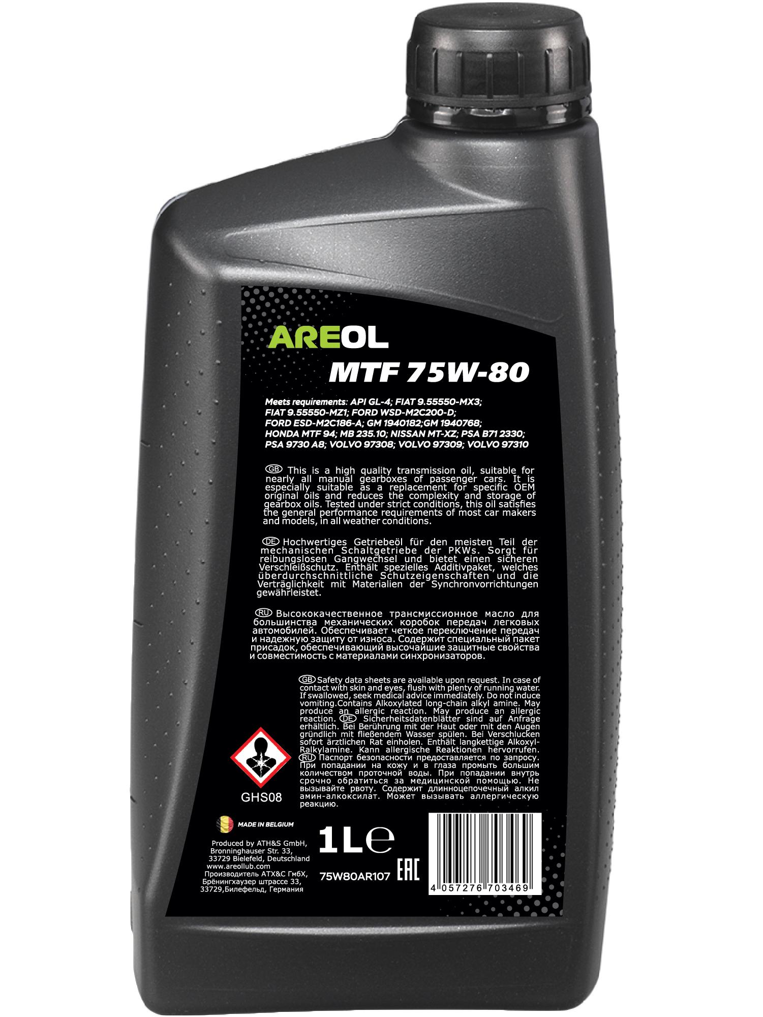 75W80AR107 AREOL AREOL MTF 75W80 (1L) полусинт. трансм. масло для робот. и МКПП! API GL-4, MB 235