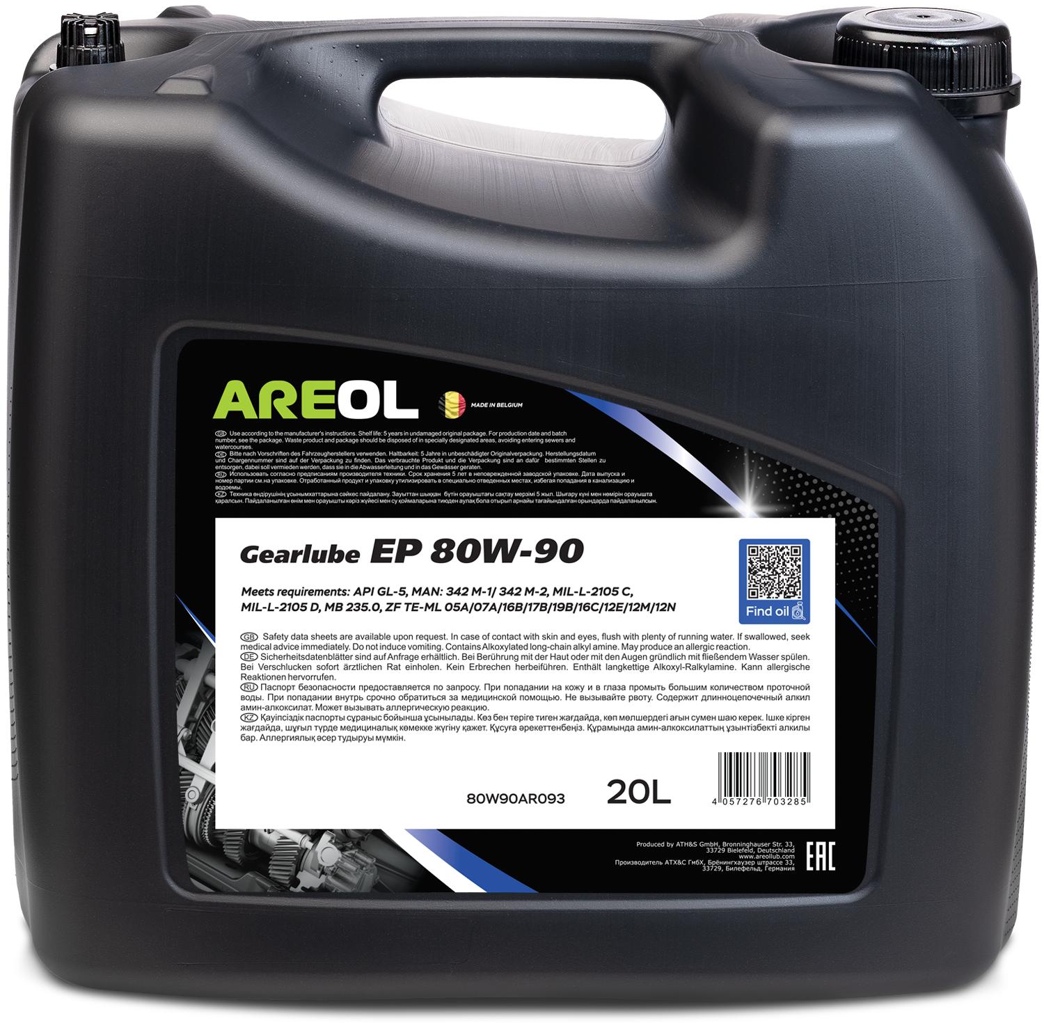 80W90AR093 AREOL AREOL Gearlube EP 80W90 (20L) трансм. минерал. масло для гипоидных передач! API