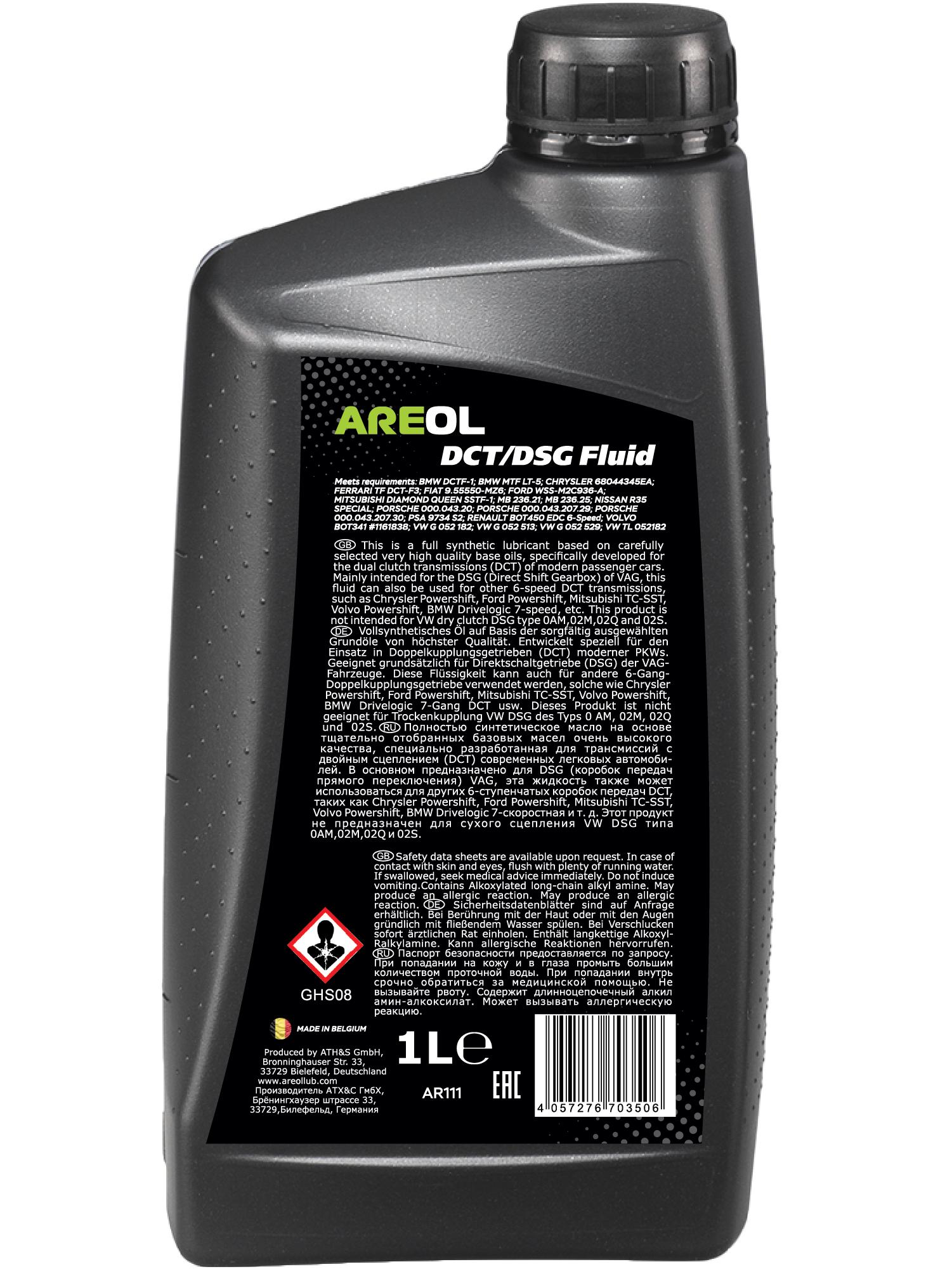 AR111 AREOL МАСЛО DCTDSG FLUID (1л) синт. желт. жидк. для DSG КПП VW G 052 182G 052 529, ана