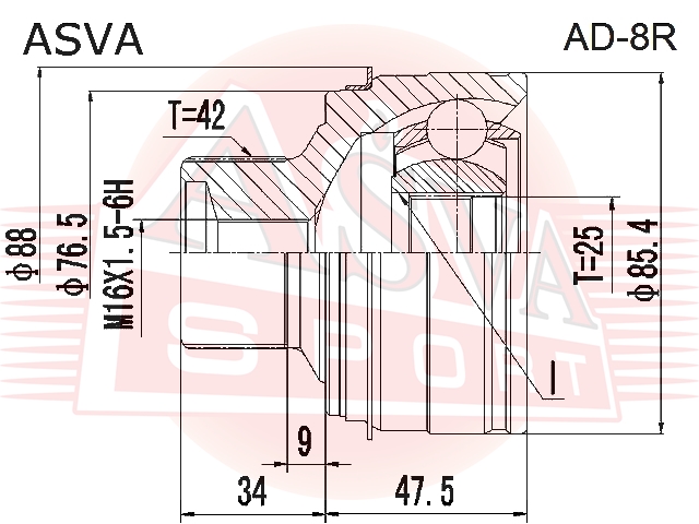 AD-8R ASVA ШРУС НАРУЖНЫЙ 25X76 5X42 AD8R