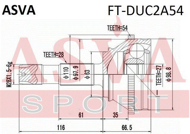 FT-DUC2A54 ASVA ШРУС НАРУЖНЫЙ 27х63х28 FTDUC2A54