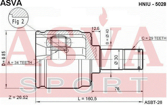 HNIU-5028 ASVA ШРУС ВНУТРЕННИЙ ЛЕВЫЙ 34x40x29