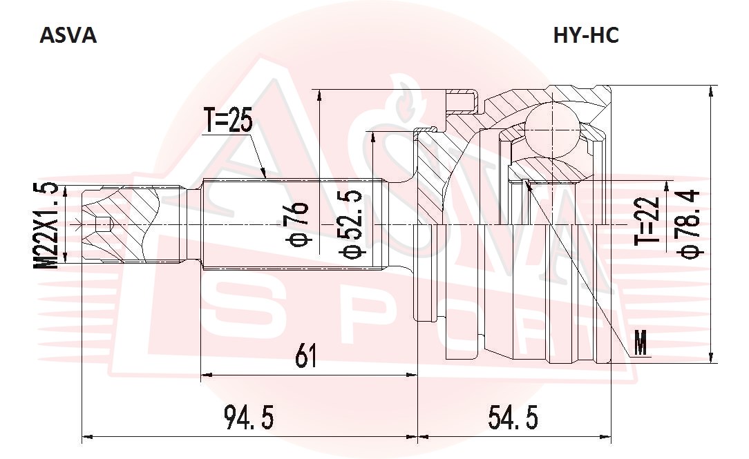 HY-HC ASVA ШРУС НАРУЖНЫЙ 22Х52,5Х25 HY-HC