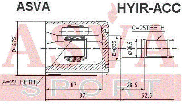HYIR-ACC ASVA ШРУС ВНУТРЕННИЙ ПРАВЫЙ 22x35x25 12 HYIRACC