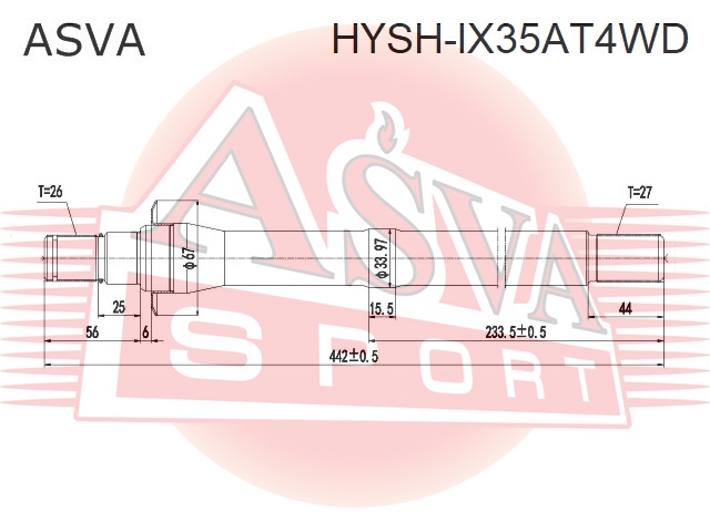 HYSH-IX35AT4WD ASVA ПОЛУОСЬ ПРАВАЯ 27X422X26 HYSHIX35AT4WD