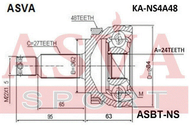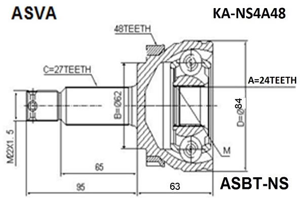 KA-NS4A48 ASVA ШРУС НАРУЖНЫЙ 24x62x27 12 KANS4A48