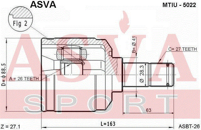 MTIU5022 ASVA ШРУС ВНУТРЕННИЙ ЛЕВЫЙ 26X41X27 12 MTIU5022