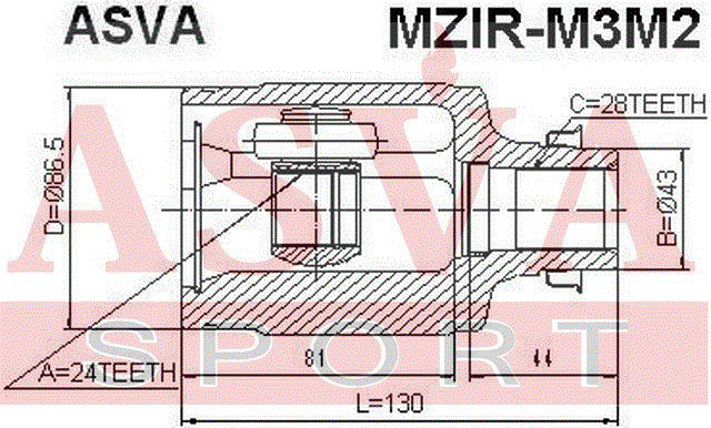 MZIR-M3M2 ASVA ШРУС ВНУТРЕННИЙ ПРАВЫЙ 24x43x28 MZIRM3M2