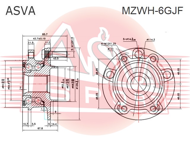 MZWH-6GJF ASVA Ступица передняя MZWH6GJF