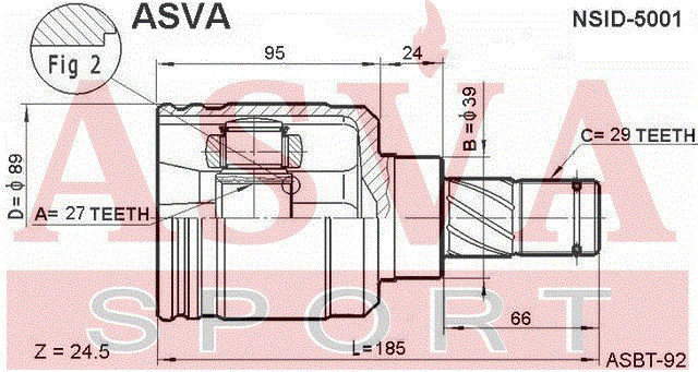 NSID-5001 ASVA ШРУС ВНУТРЕННИЙ ЛЕВЫЙ 27x39x29 12 NSID5001