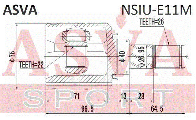 NSIU-E11M ASVA ШРУС ВНУТРЕННИЙ 22x40x26 (10013150/050618/0025430/9, Китай)
