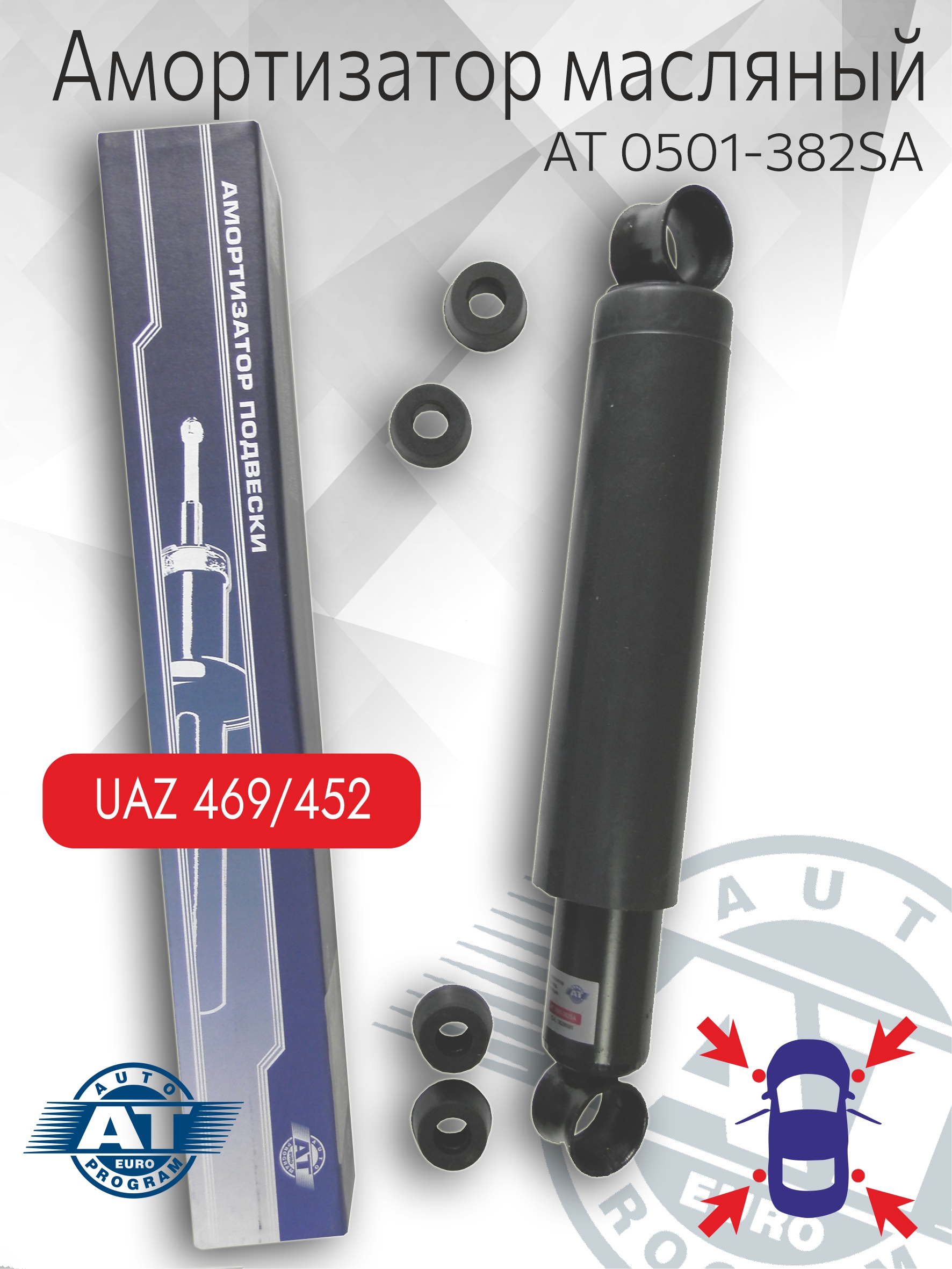 AT 0501-382SA AT Амортизатор УАЗ 3151, 469, 452 и его модиф. левыйправый, переднийзадний масляный