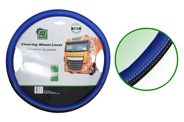 | Наименование | Оплетка руля (XXL) 44-46см экокожа черно-синяя AT |