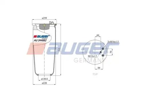 AU344882 AUGER пневмопод. без стак. !2штуц.M16 смещ.84 1шп.M12 \MAN TGA/TGS/TGX