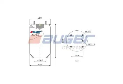 AU34813 AUGER пневмоподушка без стак.!h511 4шп.M12. 1отв.штуц.M22. Н: 1отв. \SAF/Trailor/МАЗ/R