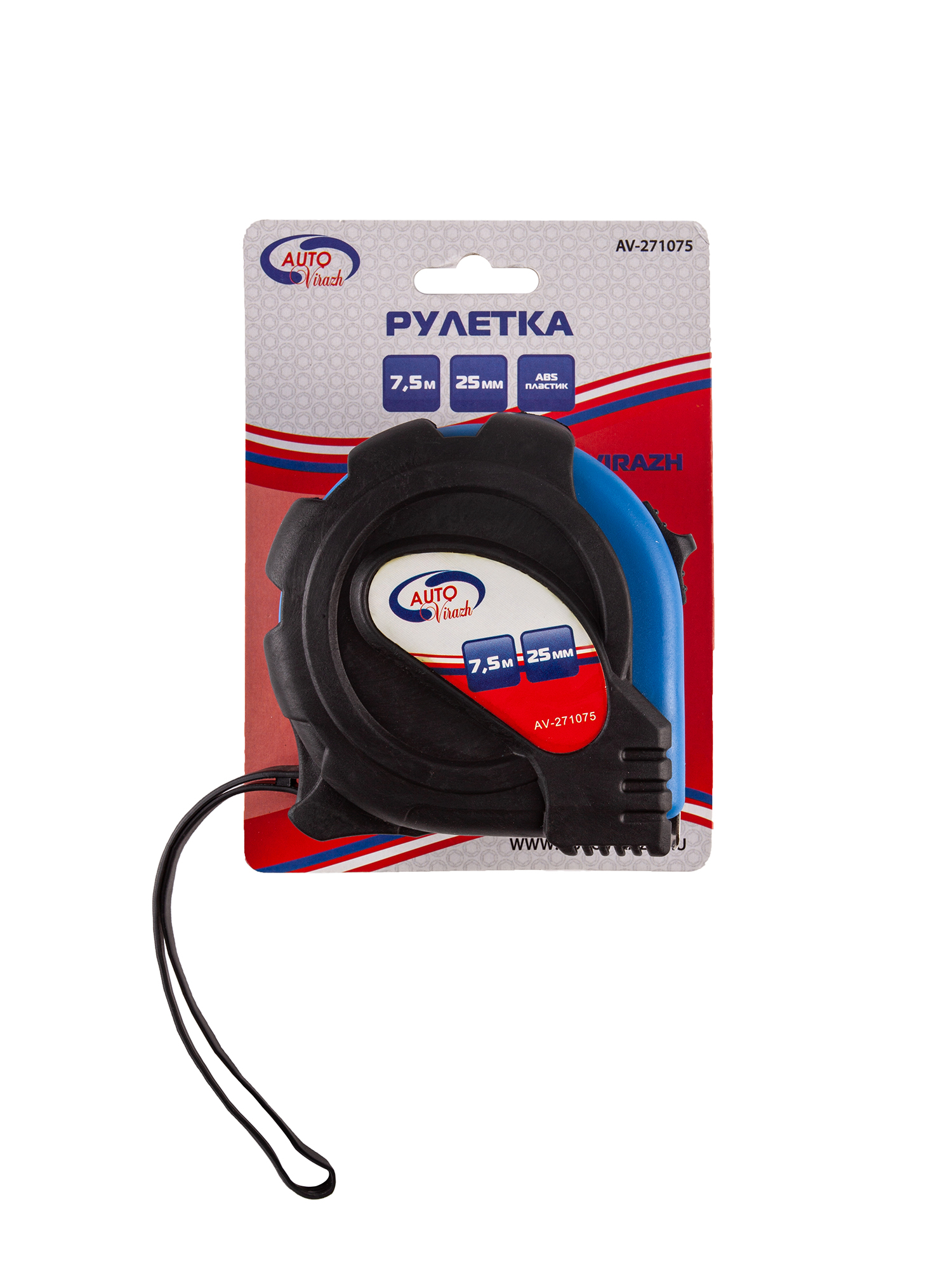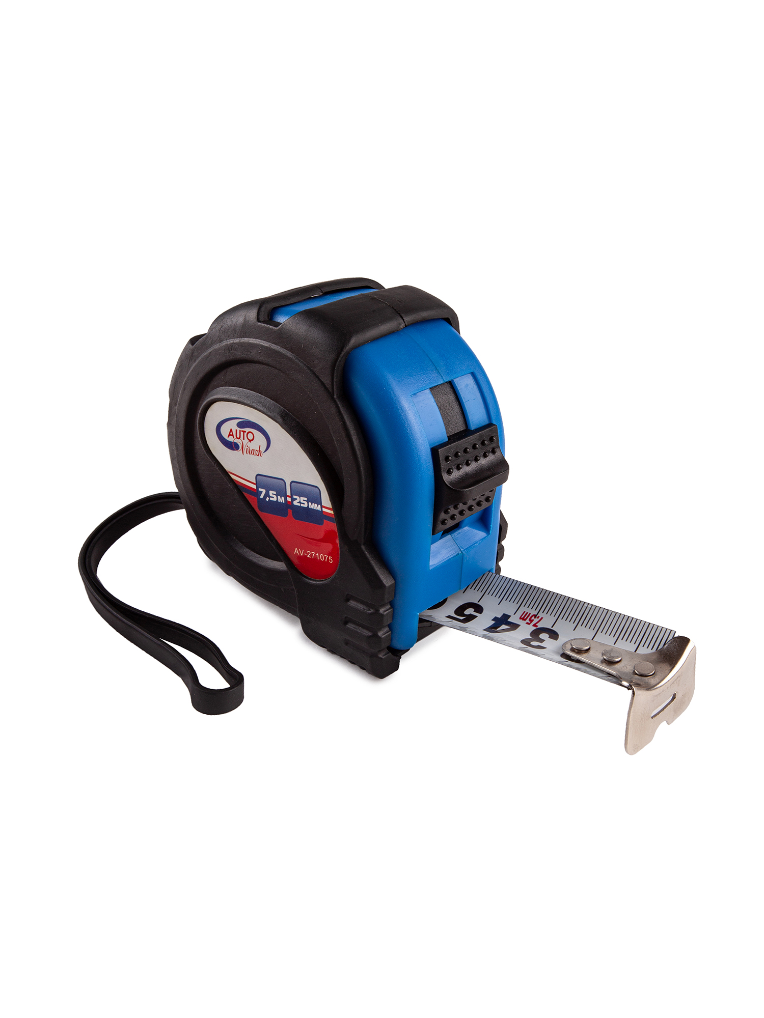 AV271075 AUTO VIRAZH Рулетка 7.5м 25мм обрезиненный корпус с одним фиксатором AUTOVIRAZH