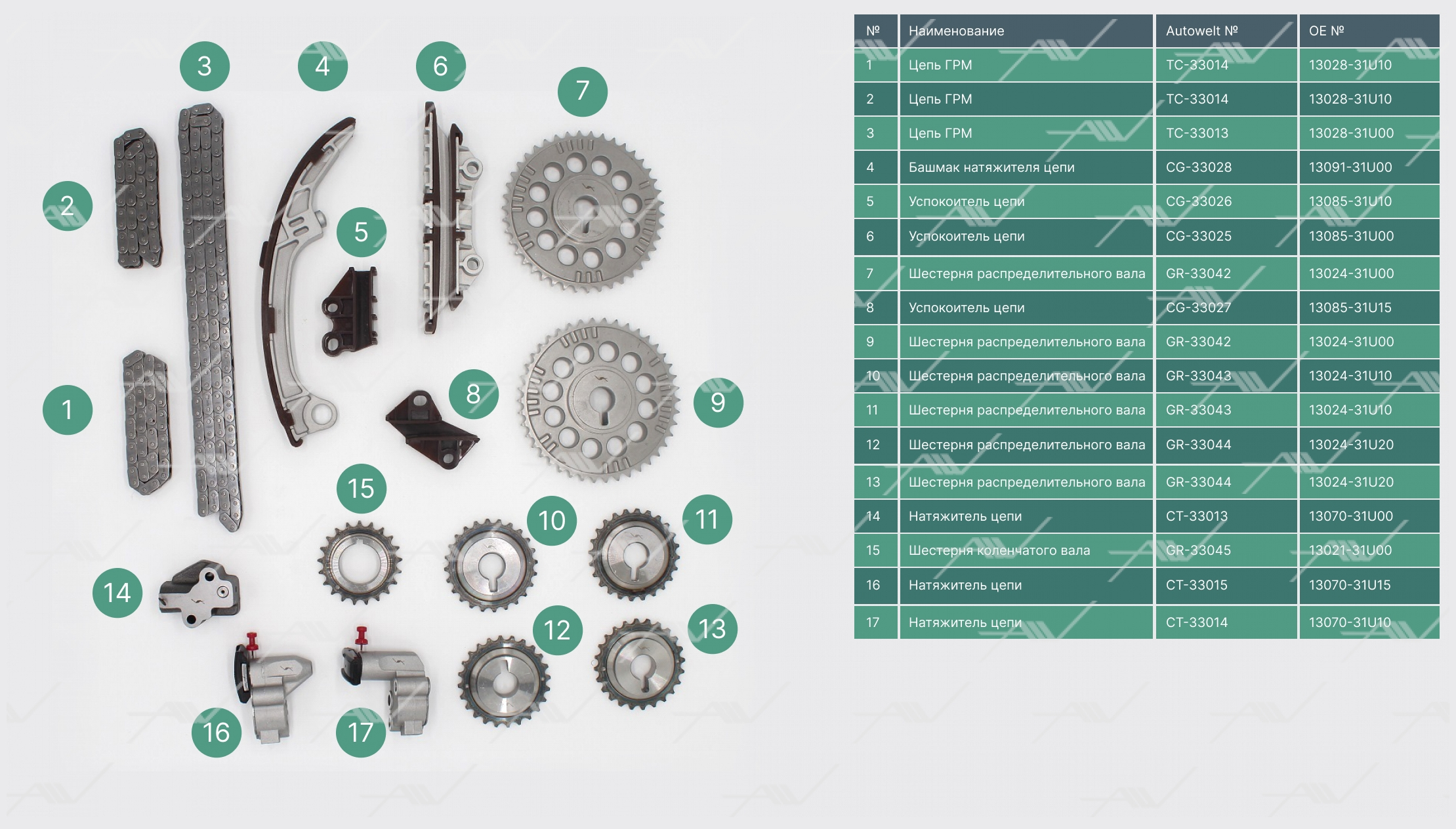 TK-33010 AUTOWELT TK-33010 КОМПЛЕКТ ГАЗОРАСПРЕДЕЛЕНИЯ NISSAN VQ20DE/VQ30DE