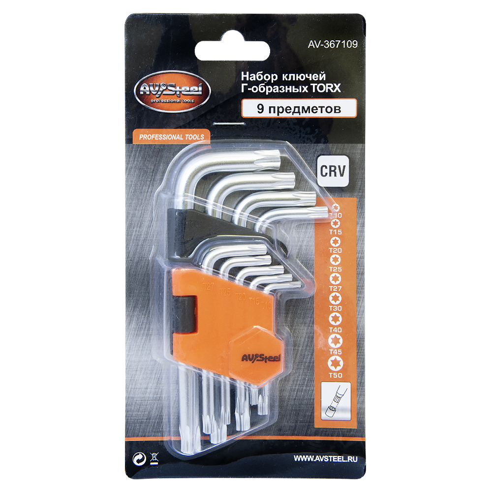 | Наименование | Набор ключей TORX ( 9 предметов) "AV Steel" |