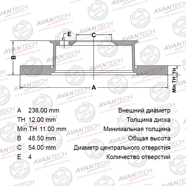 Диск тормозной передний AVANTECH