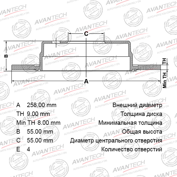 | Наименование | Диск тормозной задний AVANTECH |
