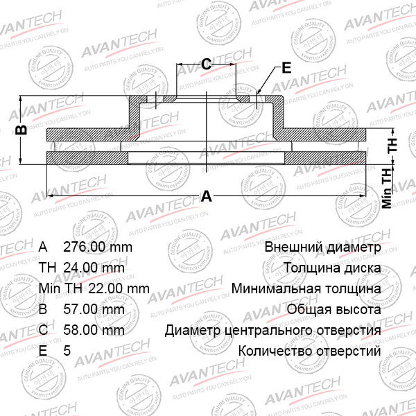 | Наименование | Диск тормозной передний AVANTECH |