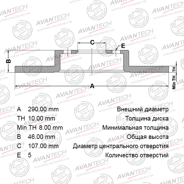 | Наименование | Диск тормозной передний AVANTECH |