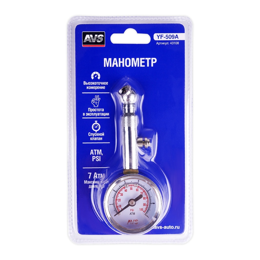 | Наименование | Манометр шинный механический 7атм. AVS |