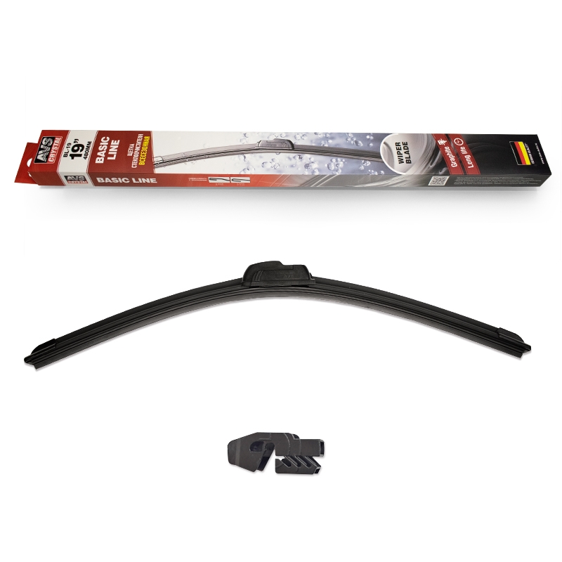| Наименование | Щетка стеклоочистителя 480мм беcкаркасная (крепление крючок) Basic Line AVS |