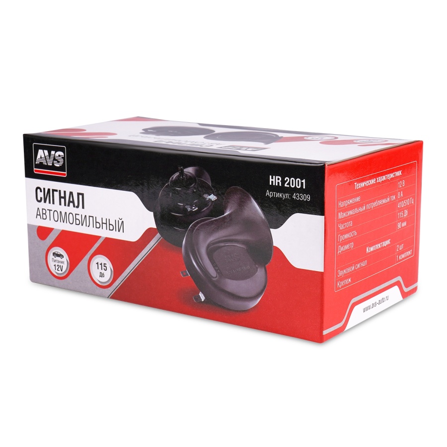 | Наименование | Сигнал звуковой 12V 410/510Hz комплект 2шт. AVS |