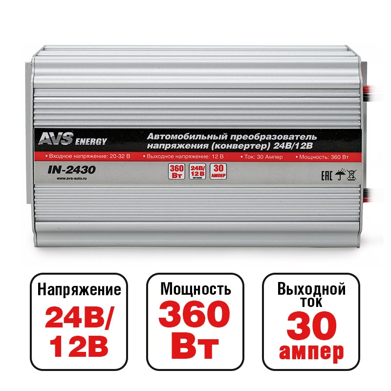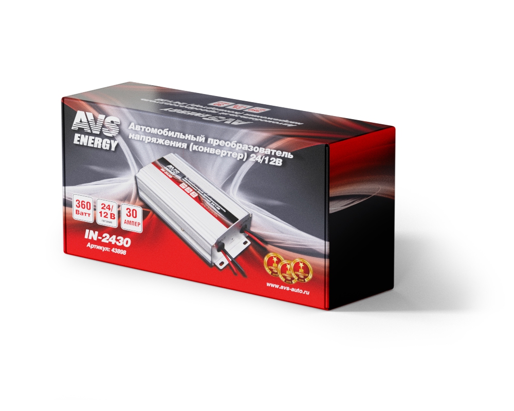 | Наименование | Преобразователь напряжения (инвертор) 24-12V 30А AVS |