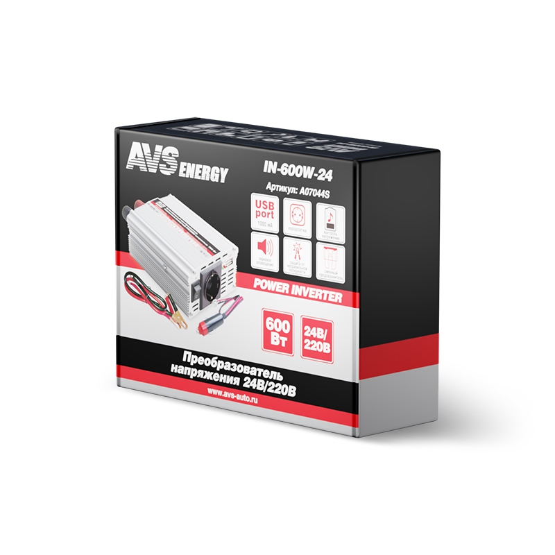 | Наименование | Преобразователь напряжения (инвертор) 24-220V 600Вт AVS |