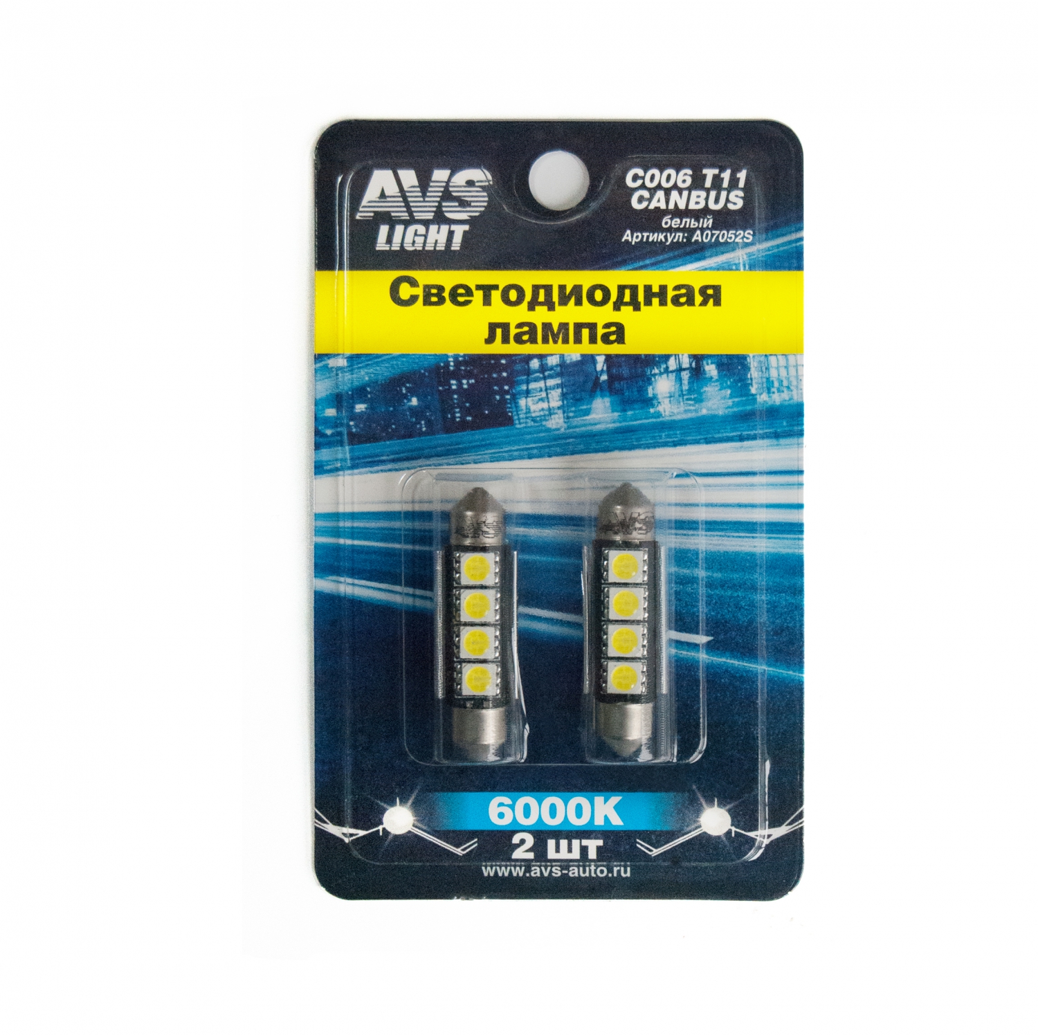 A07052S AVS к-т ламп! светодиодных C006 T11, белый (SV8.5) CANBUS 4SMD5050 42 мм 12V блистер