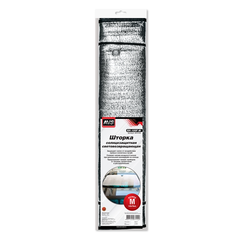| Наименование | Шторка автомобильная для лобового стекла 145х70см светоотражающая SH-105F-M AVS |