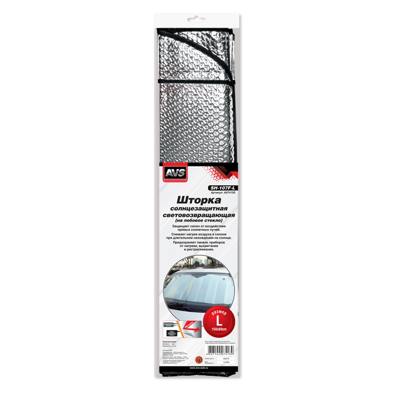 A07413S AVS Шторка автомобильная для лобового стекла 150х80см светоотражающая "Single Bubble