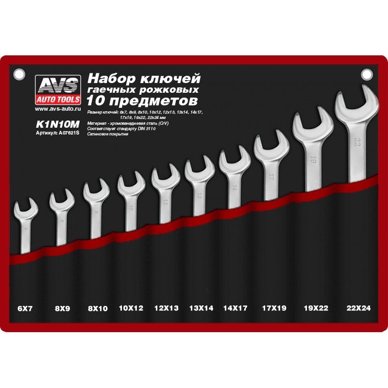 A07621S AVS набор ключей гаечных рожковых в сумке! (6-24 мм) (10 предметов) AVS K1N10M\