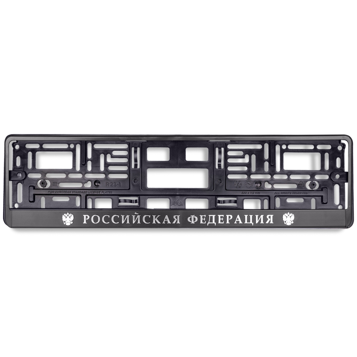 | Наименование | рамка под номерной знак! книжка, рельеф 'Российская Федерация' чёрная, серебро\ |