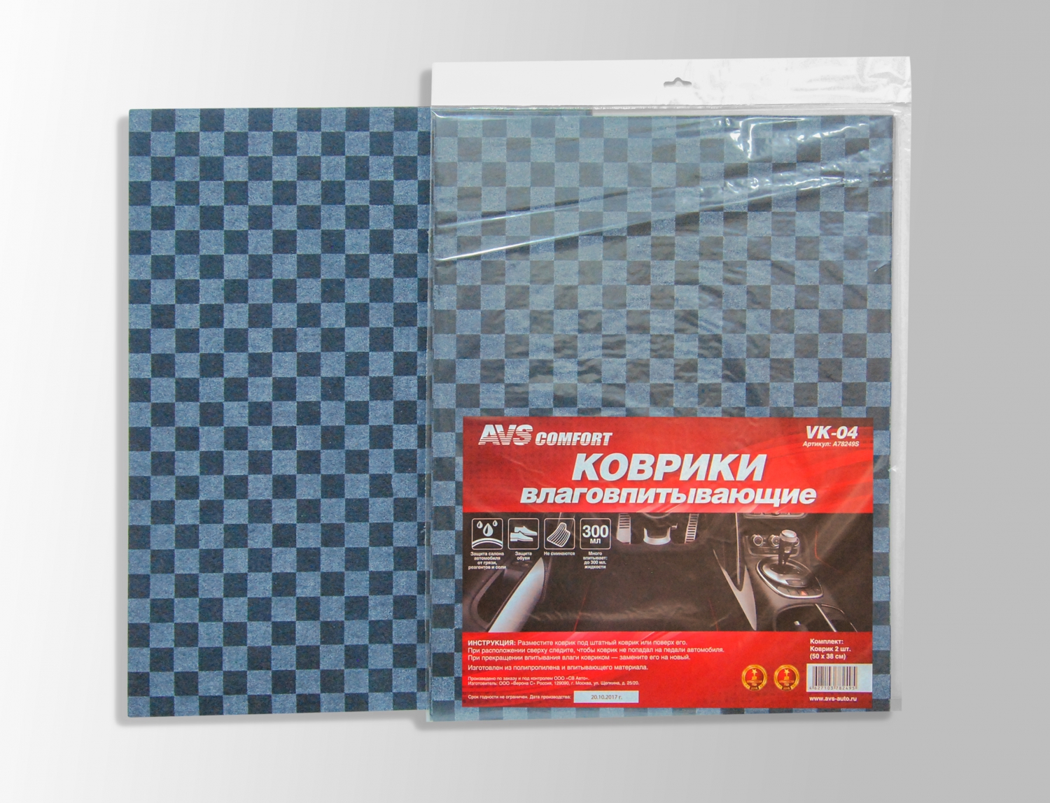 A78249S AVS коврики влаговпитывающие! VK-04, 50х38 см., 'клетка', 2 шт.\
