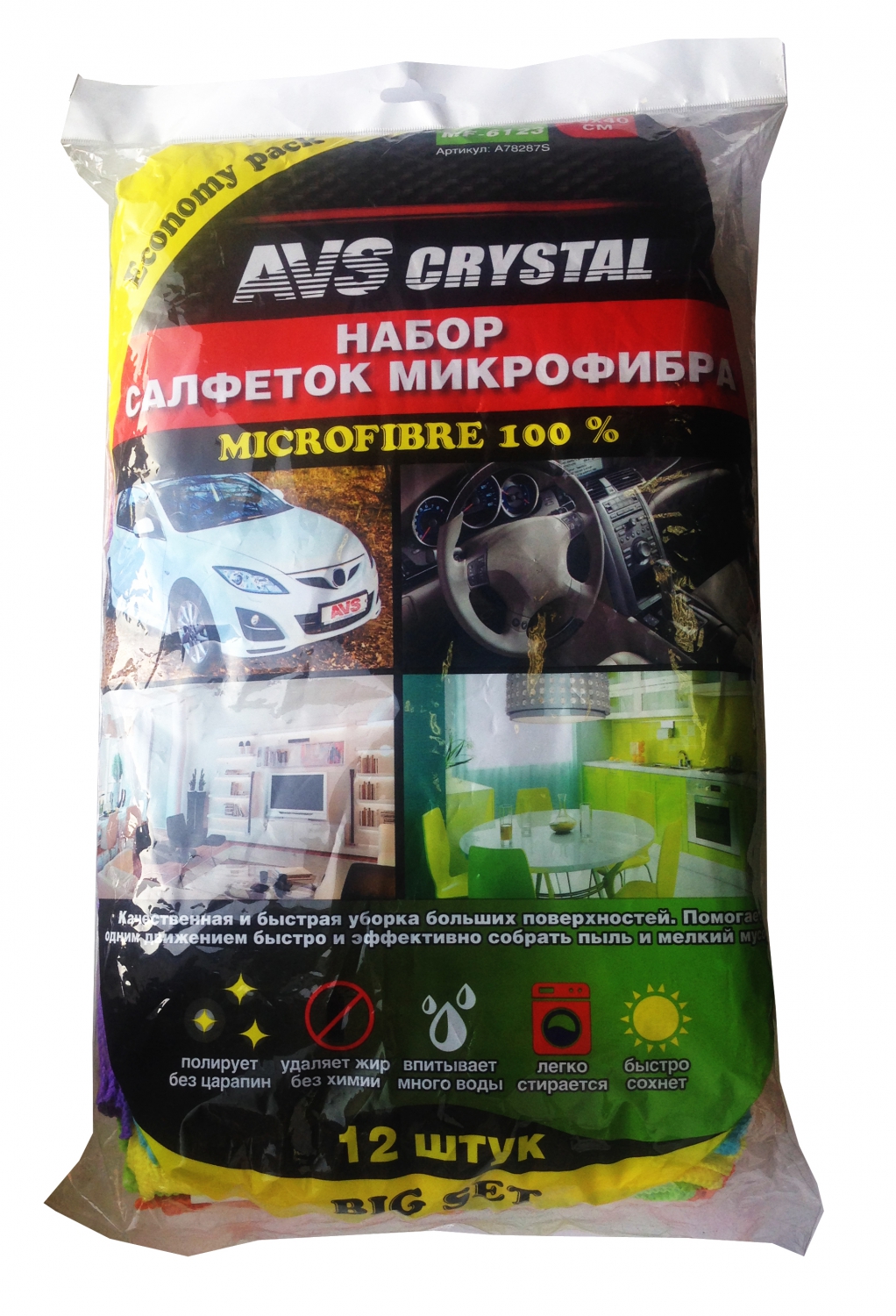 A78287S AVS набор салфеток! увеличенного размера, микрофибра, 35х40см, 12шт\