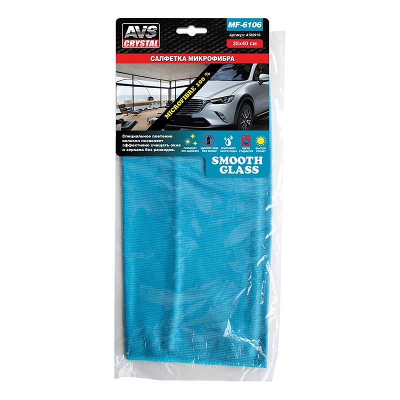 A78291S AVS салфетка! микрофибра особого плетения для стекол и зеркал 35х40см, 1шт\
