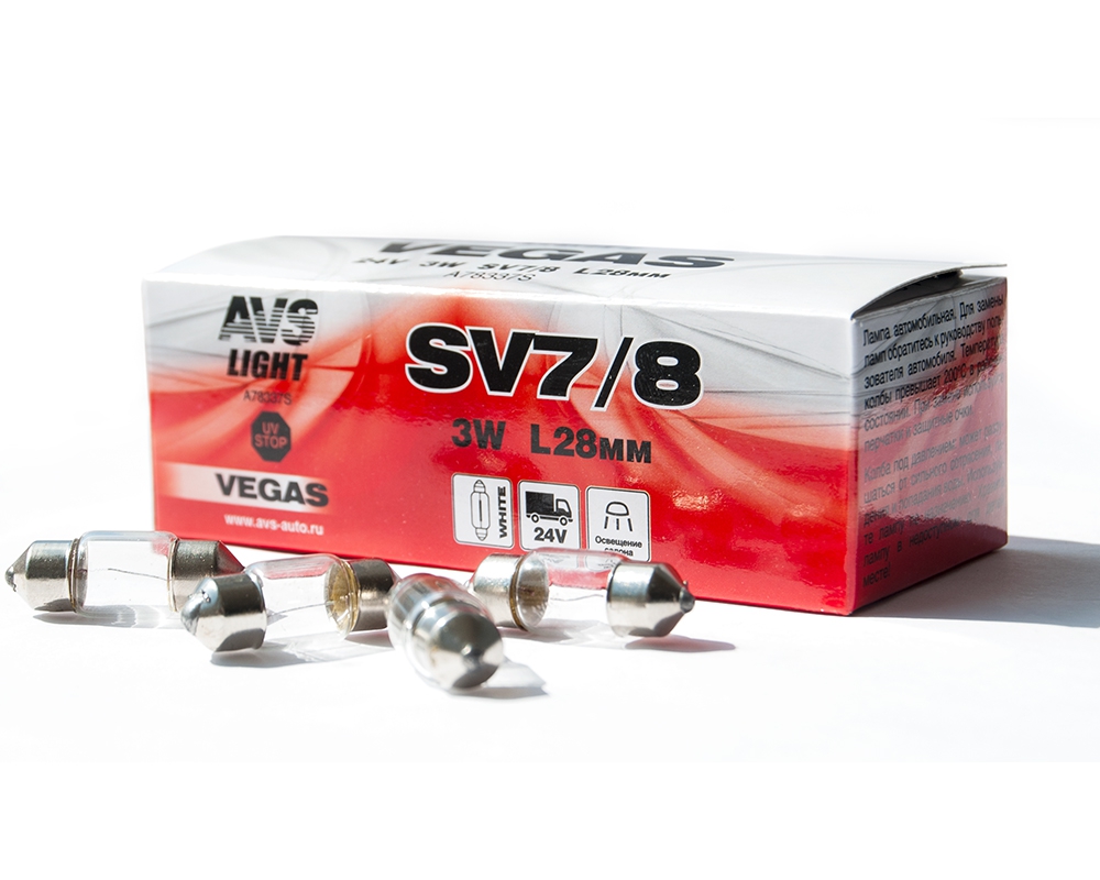 A78337S AVS Лампа 24V C3W SV7-8 28мм AVS