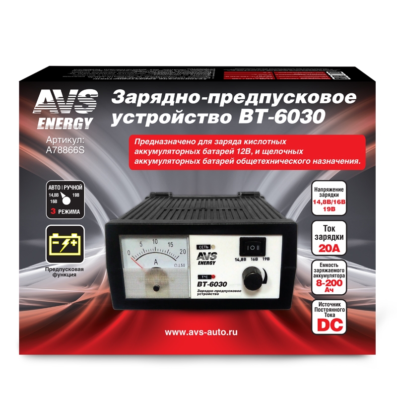 A78866S AVS зарядное устройство для АКБ! BT-6030 (20A) 12V\