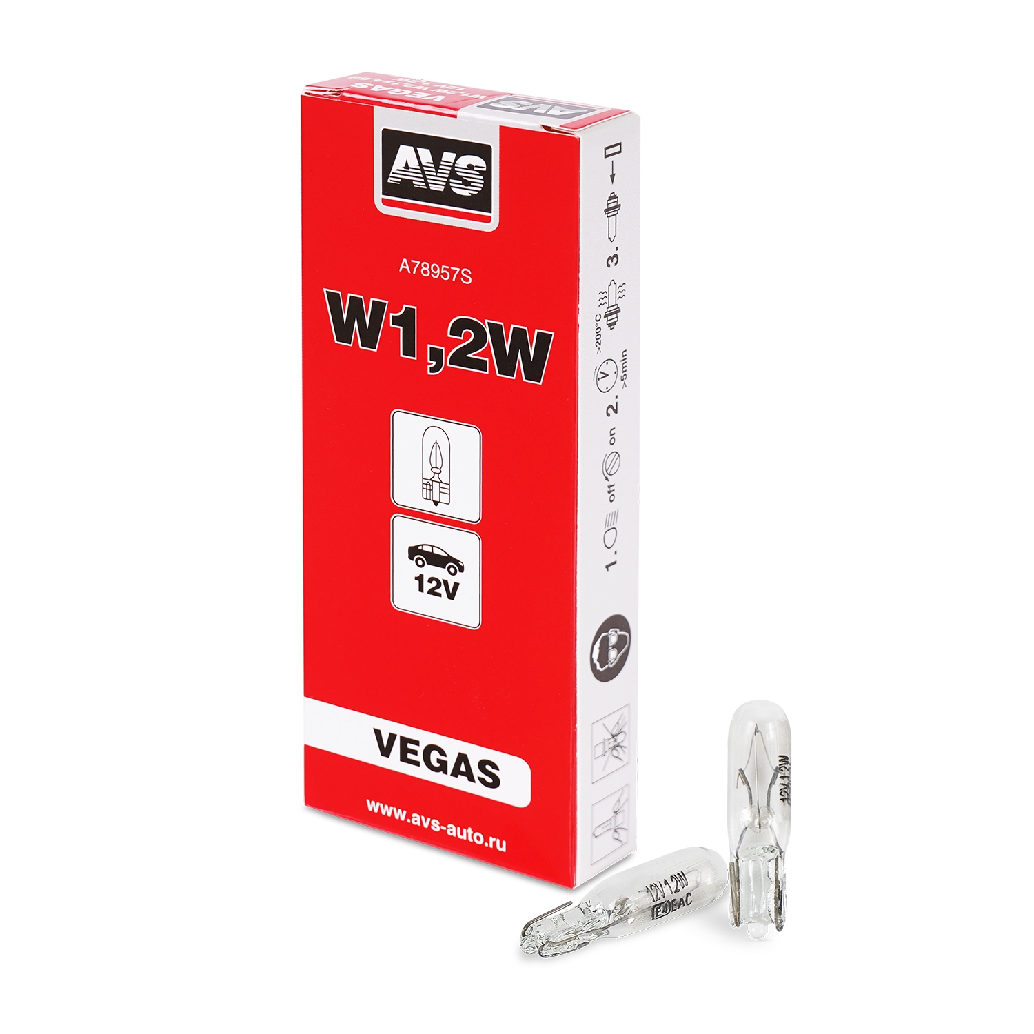 A78957S AVS к-т ламп! (W1.2W) W2.1x4.6d 1.2W 12V Vegas 10шт.\
